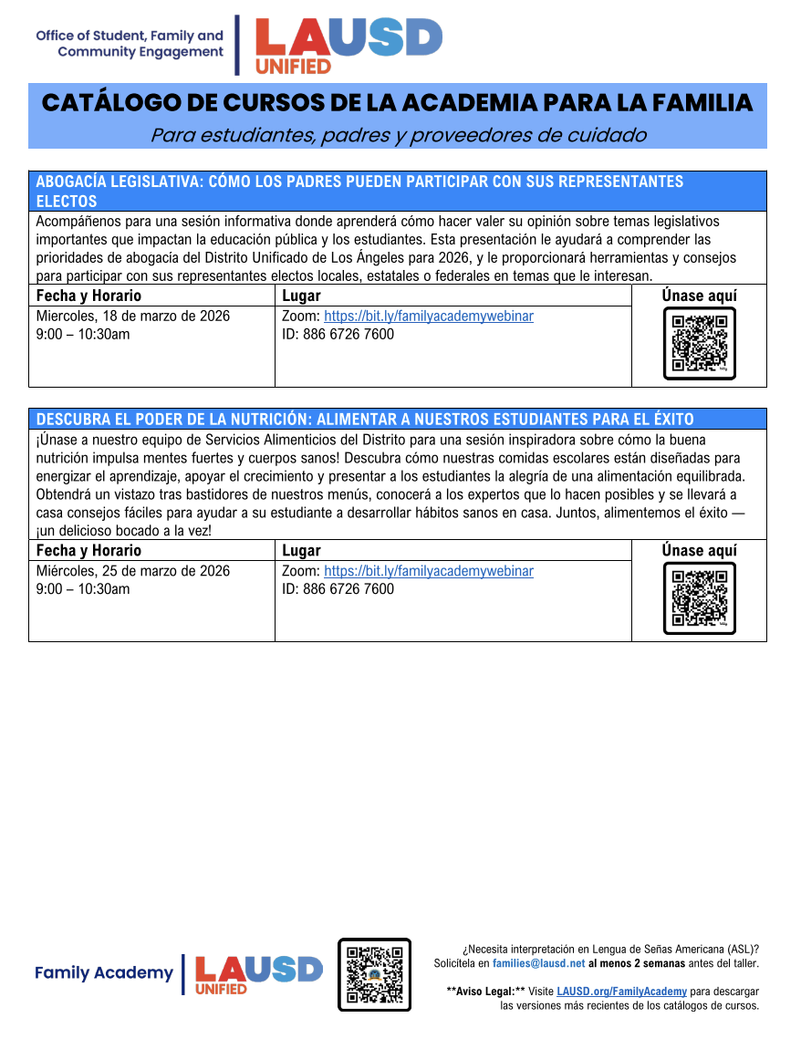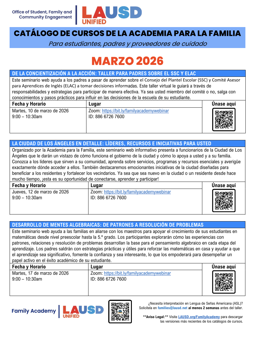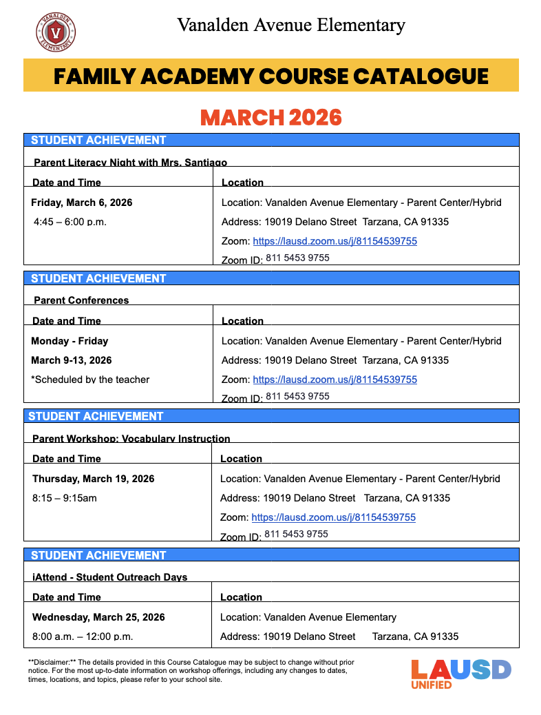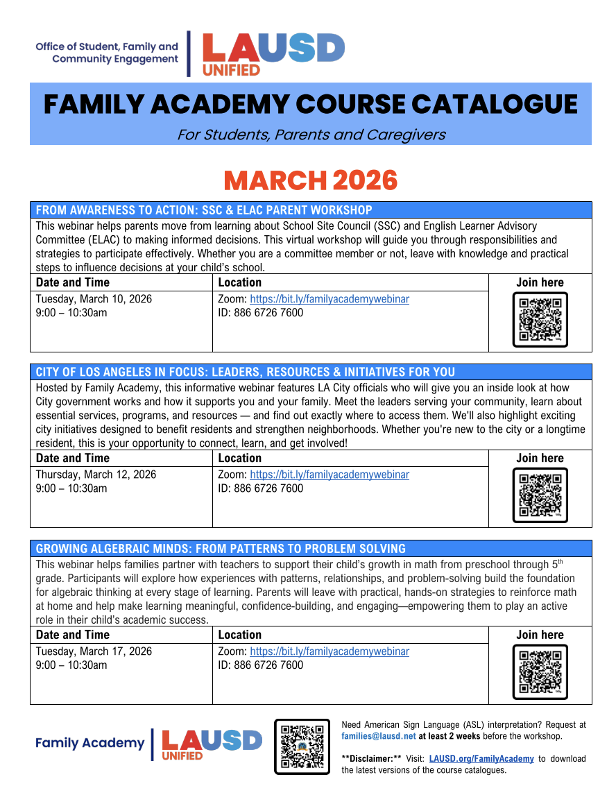 2025-2026 LAUSD Parent Student Handbook
